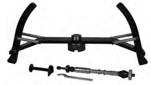 Адаптер состоит из специального фланца, центрирующего вала 14x315мм, центрирующей втулки 17 мм, конусов 21–35 мм + 15–25 мм, проставки 25x40 мм+ 25x15 мм, втулок 17 мм + 20 мм, гайки с насечкой M14x1.5 мм, специального ключа.