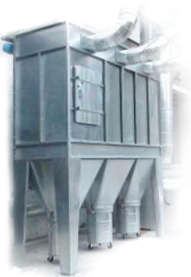 Автоматизированная система очистки фильтров с помощью сжатого воздуха (запрограммированные циклы очистки в зависимости от разности давлений). Емкости для сбора пыли на колесах.