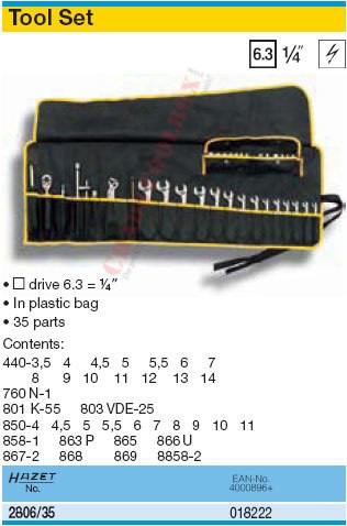 HAZET Набор электрика 35 предметов на 1/4, в мягкой подложке на пояс.