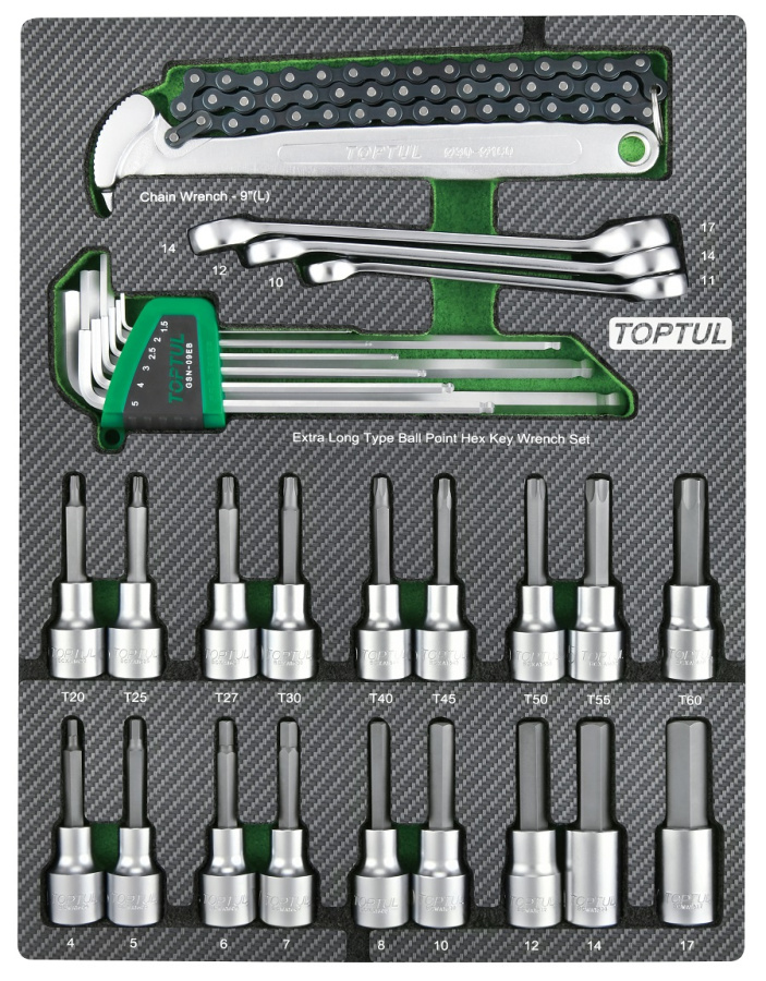 Набор торцевых насадок, шестигранники Г-образные и разрезные ключи, 31 пр. в мягком ложементе TOPTUL GEB3109 купить в Ижевске и других городах России