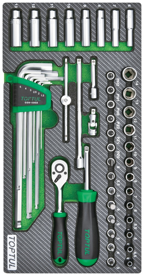 Набор головок и аксессуаров 1/4", 50 пр. в мягком ложементе TOPTUL GEA5004 купить в Ижевске и других городах России