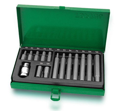 Набор бит 10 мм HEX с адаптером 1/2", 15 предметов TOPTUL