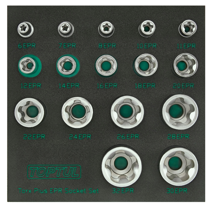 Набор торцевых головок TORX Plus EPR 1/4",3/8",1/2" 5-ти лучевые, 6EPR-32EPR, 16 пр. на ложементе TOPTUL GABF1601 купить в Ижевске и других городах России