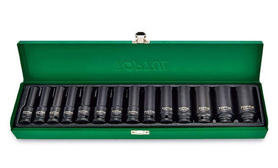 Набор ударных головок удлиненных 1/2" от 10 до 32 мм, 14 пр. в мет.ящике TOPTUL GDAD1401 купить в Ижевске и других городах России
